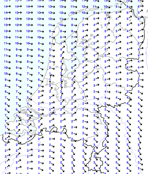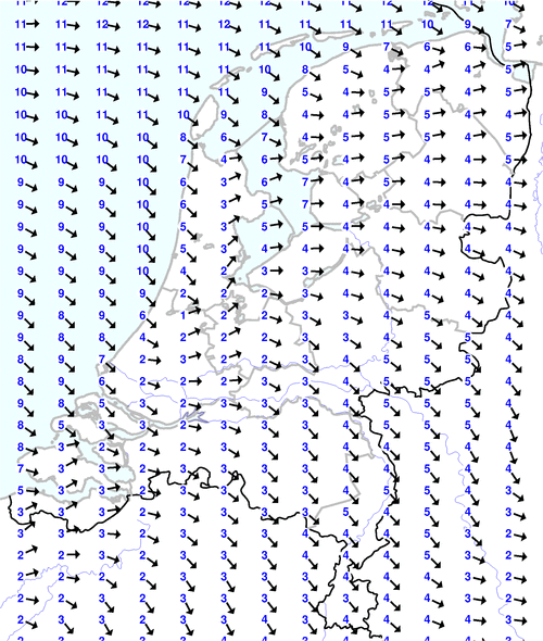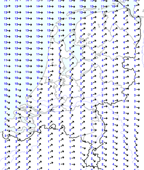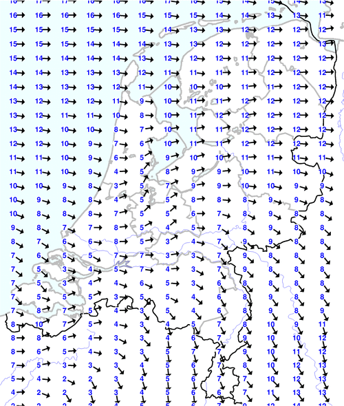 Kijk voor de verwachting voor morgen eventueel naar de algemene KNMI verwachting