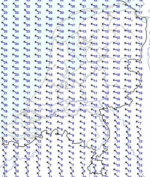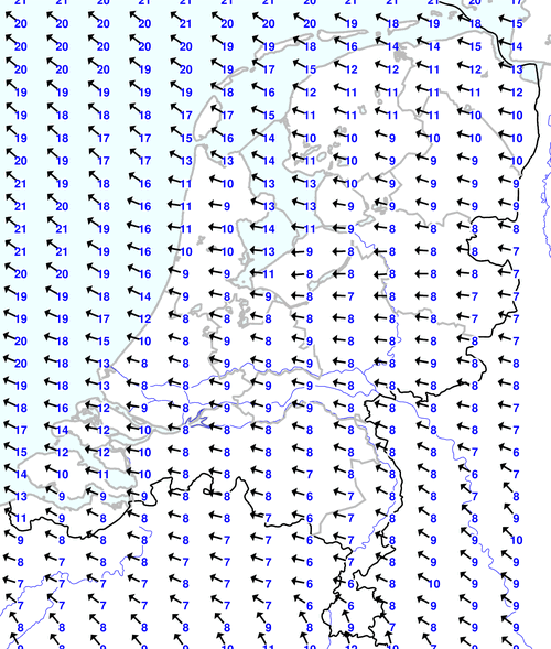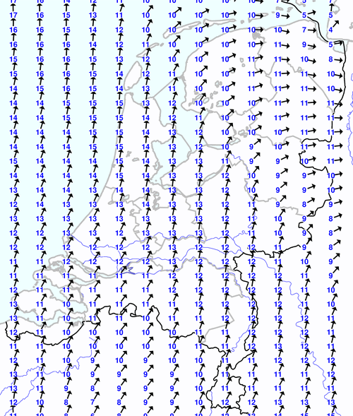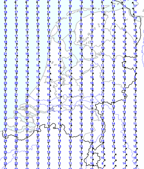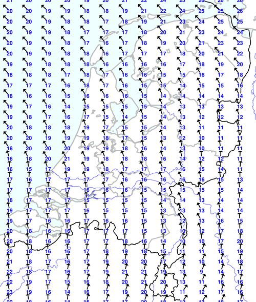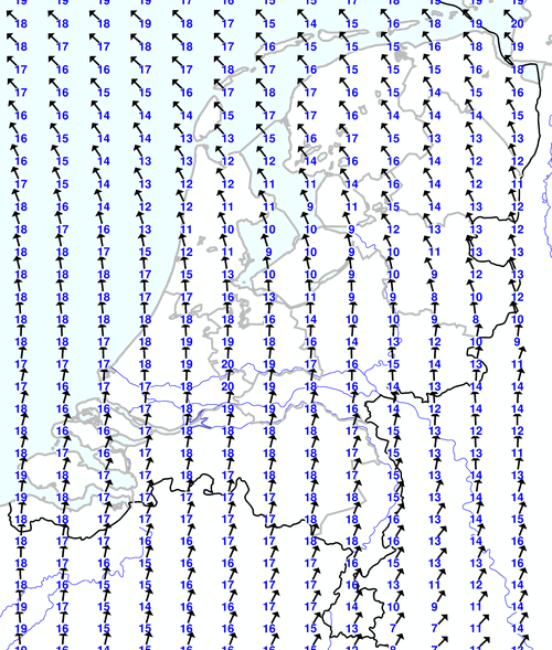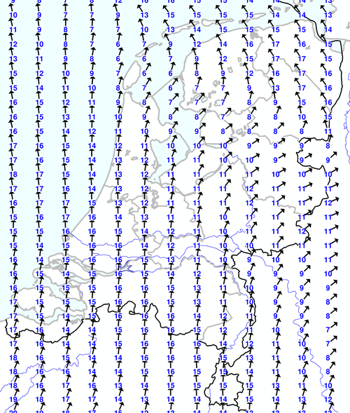 Kijk voor de verwachting voor morgen eventueel naar de algemene KNMI verwachting