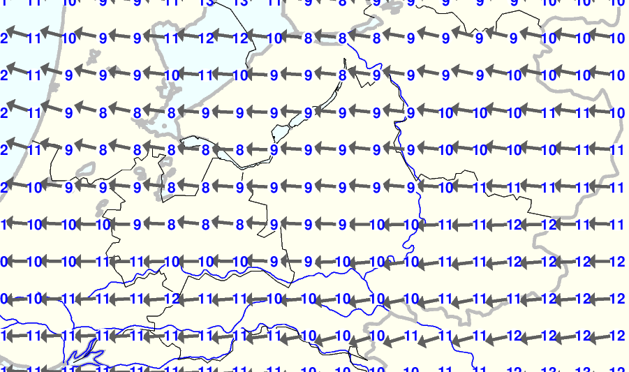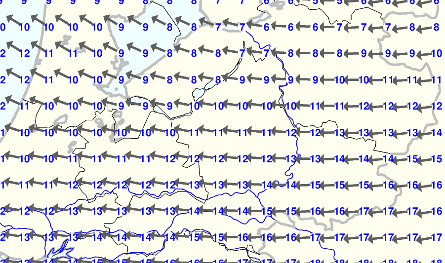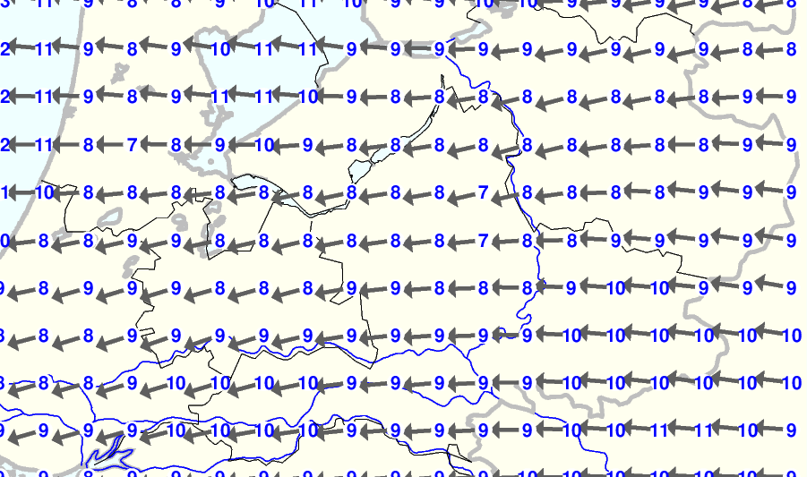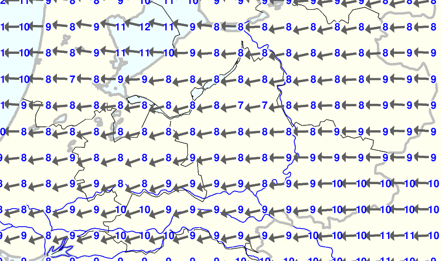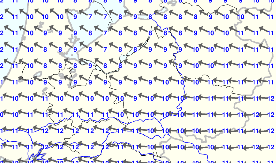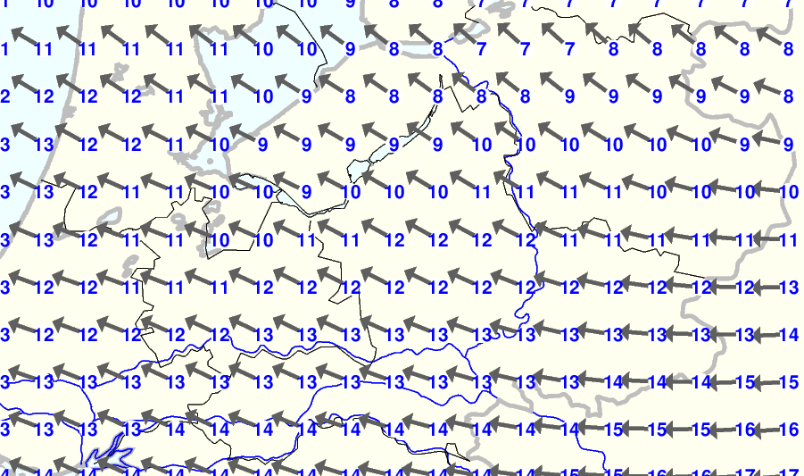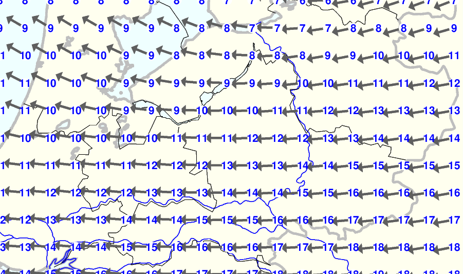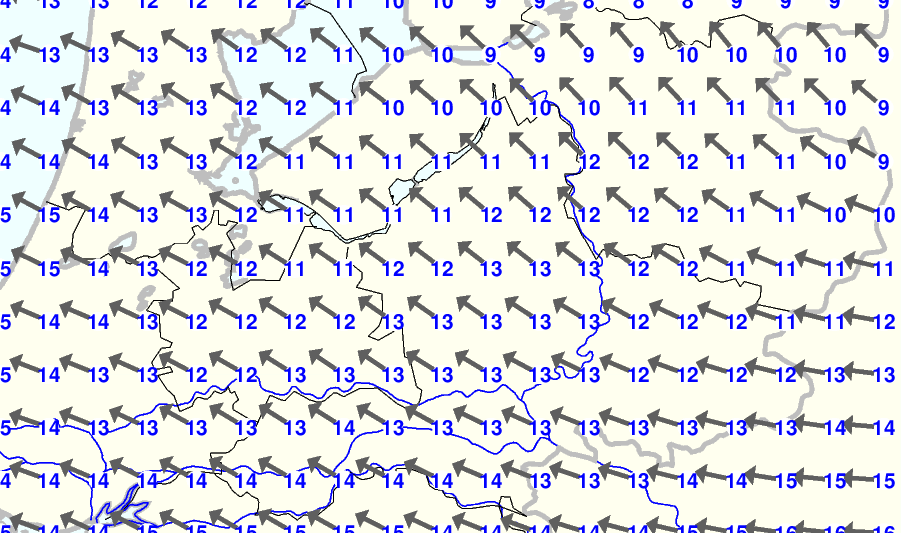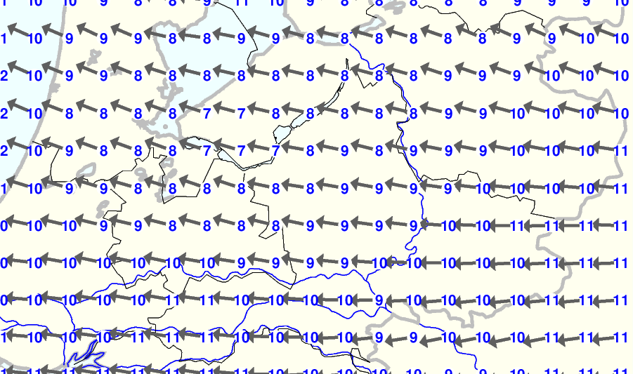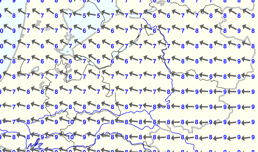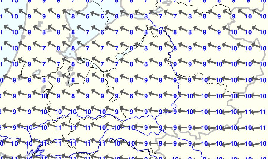 Kijk voor de verwachting voor morgen eventueel naar de algemene KNMI verwachting