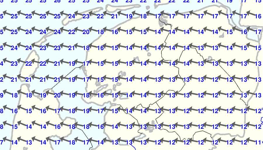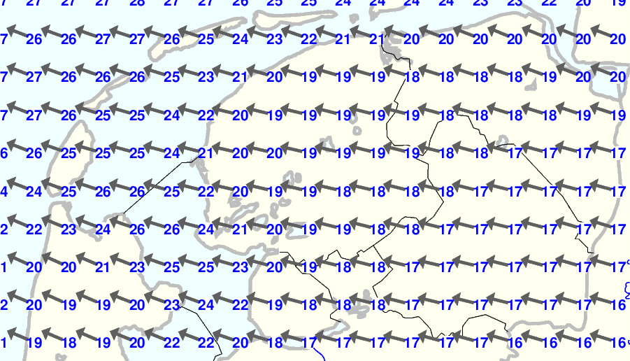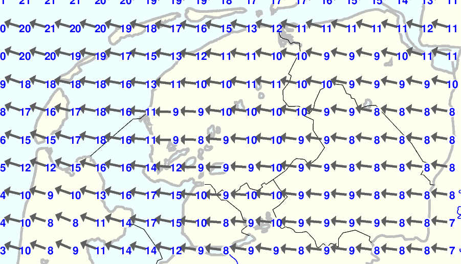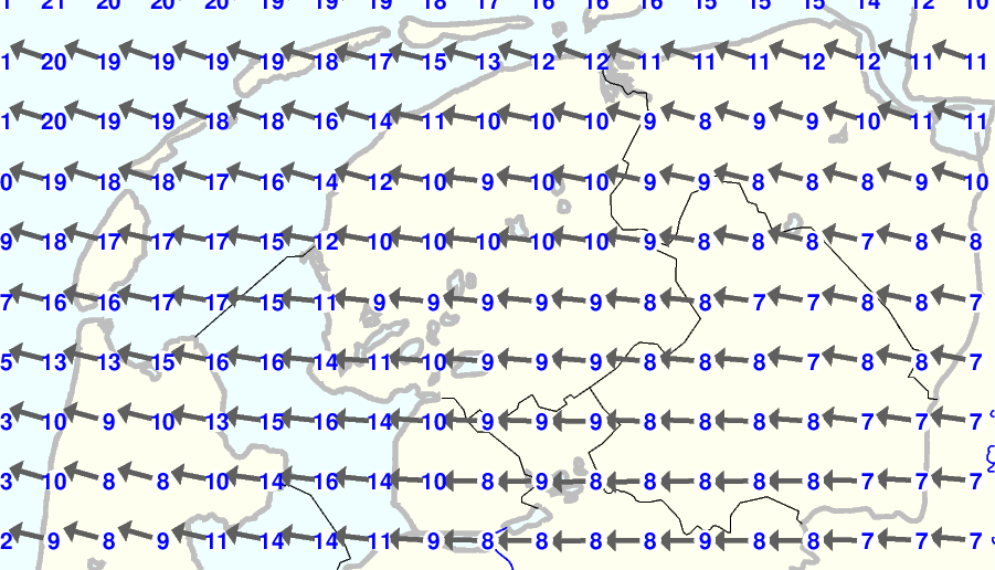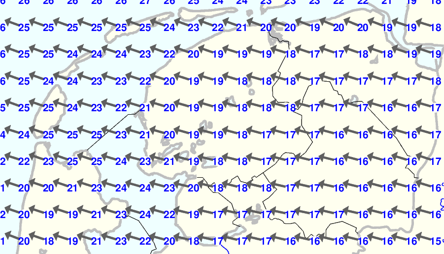 | Kijk voor de verwachting voor morgen eventueel naar de algemene KNMI verwachting |