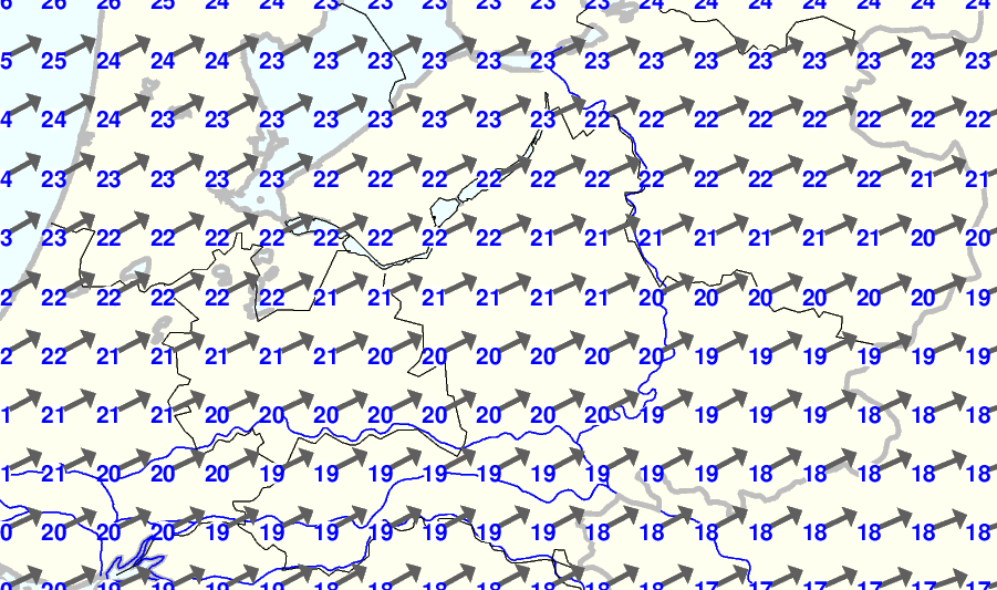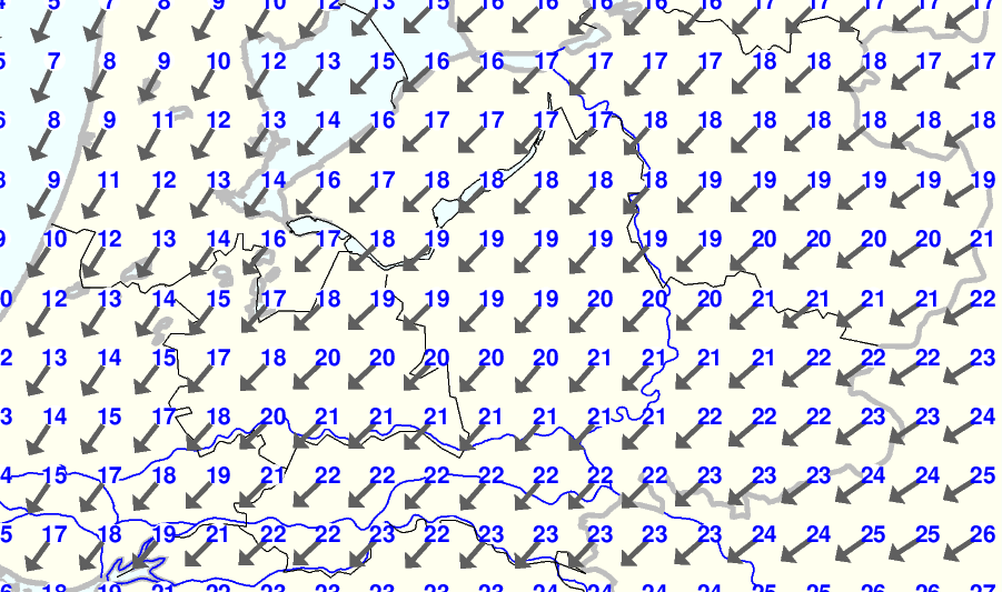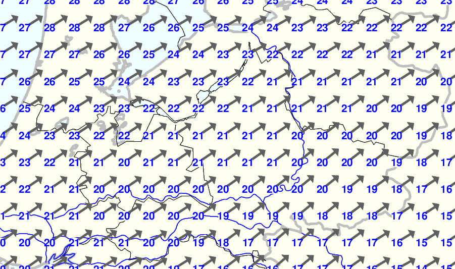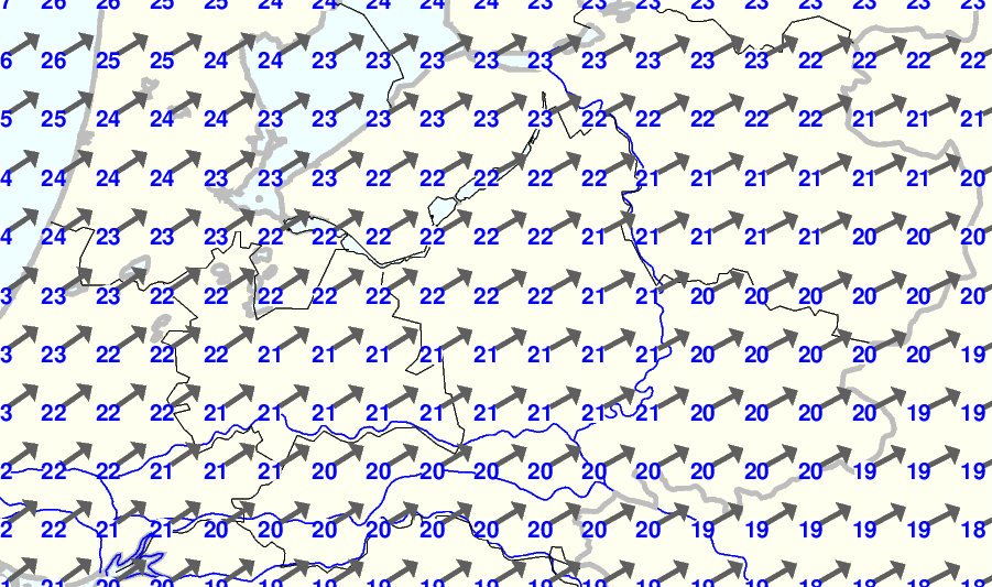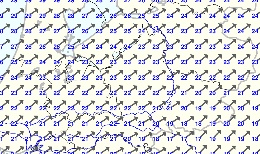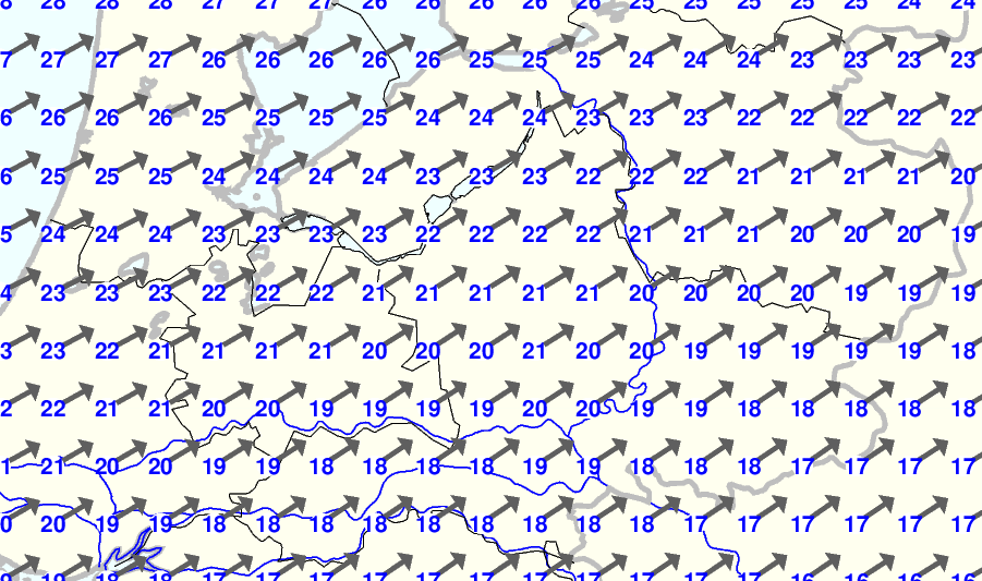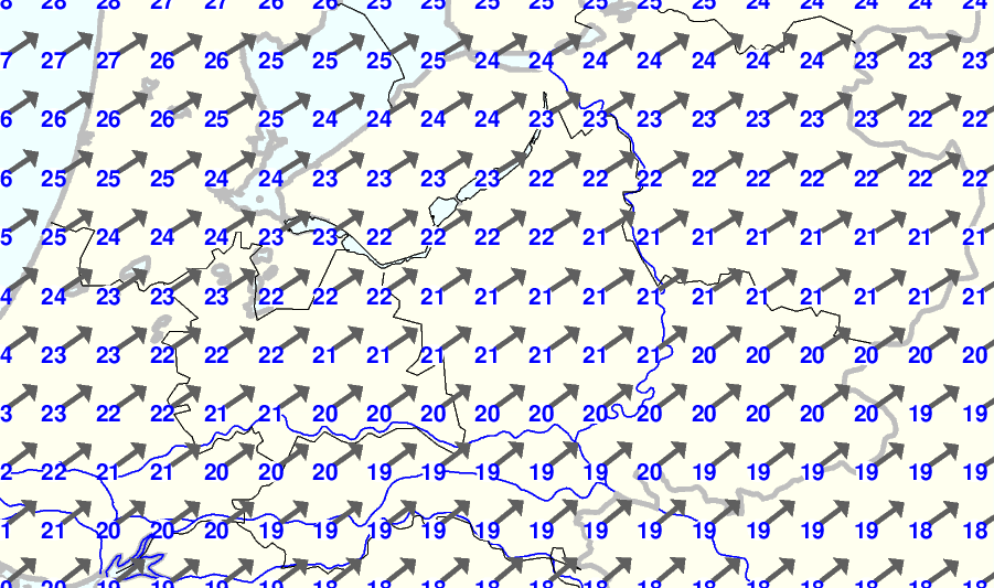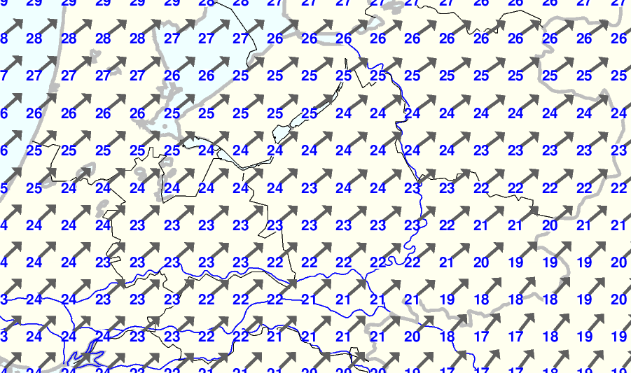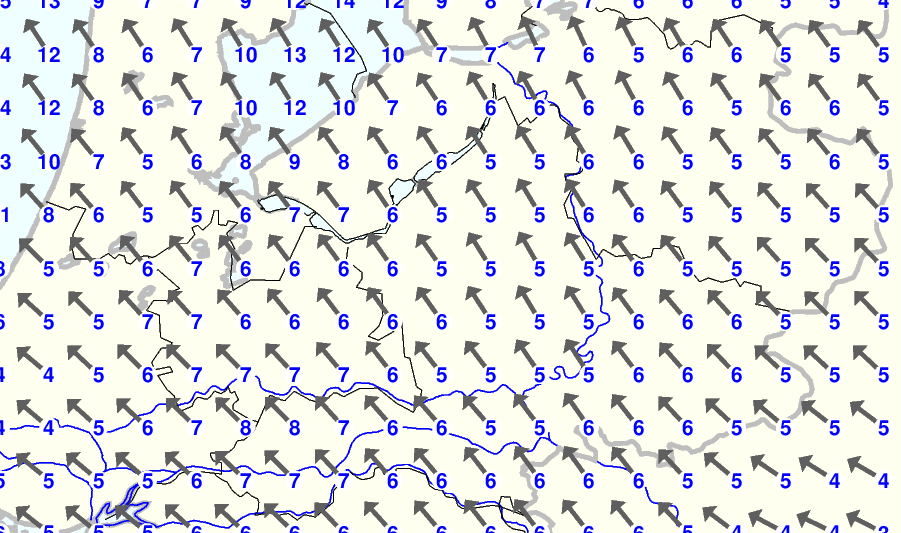 | Kijk voor de verwachting voor morgen eventueel naar de algemene KNMI verwachting |