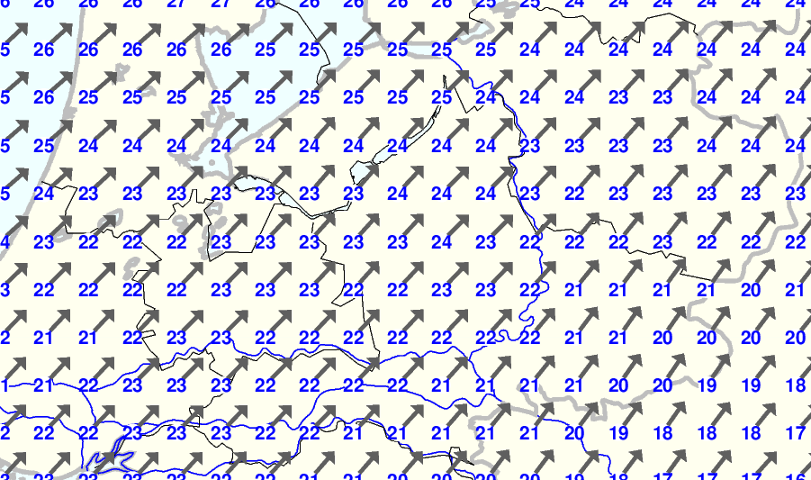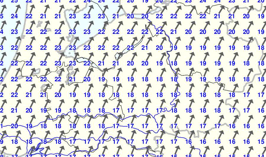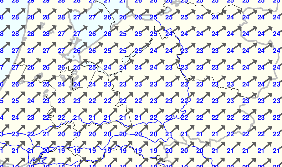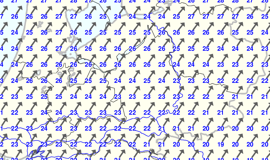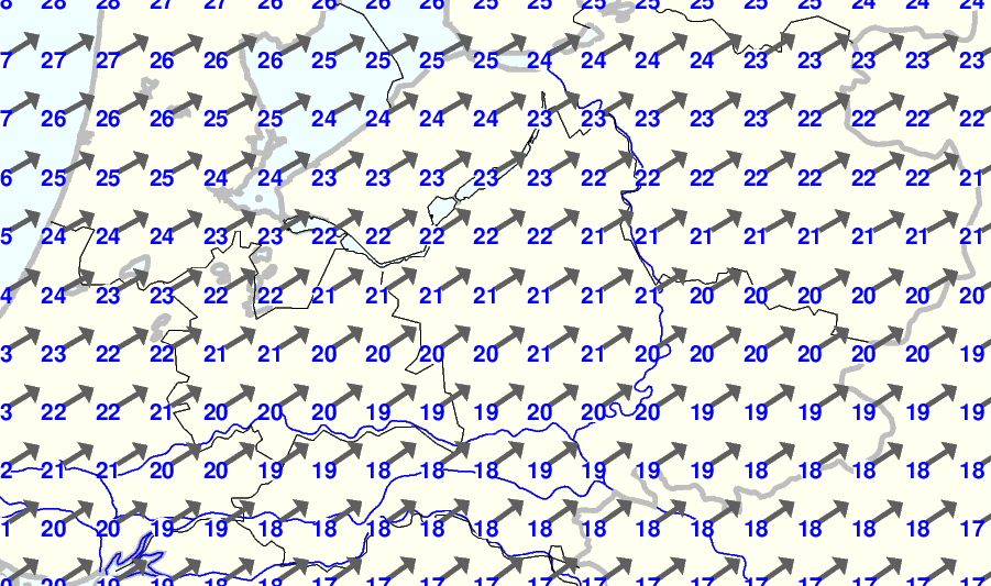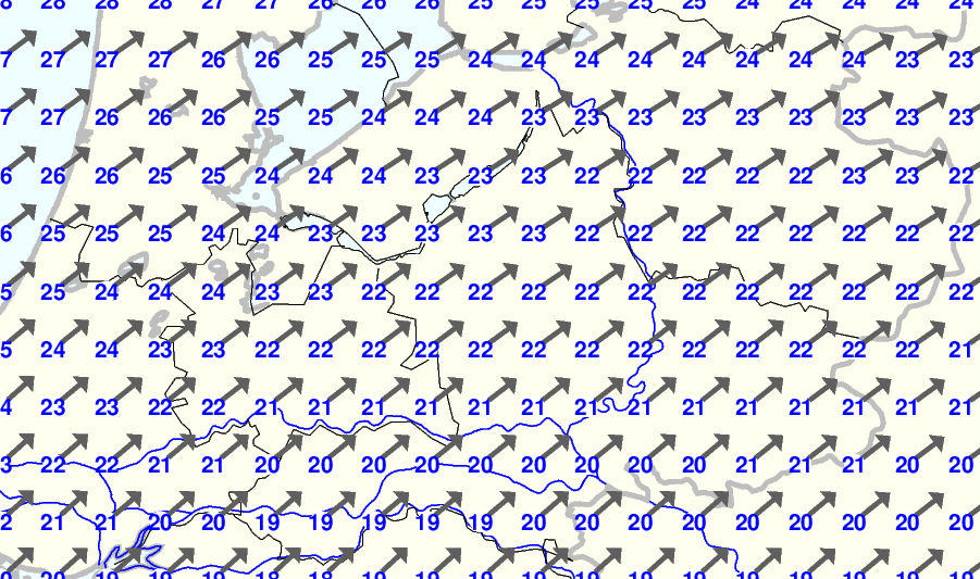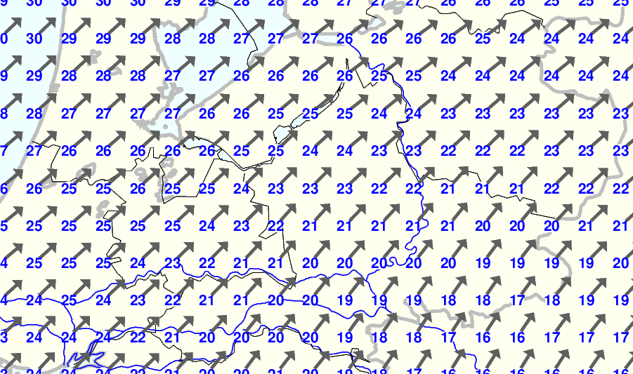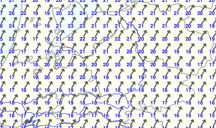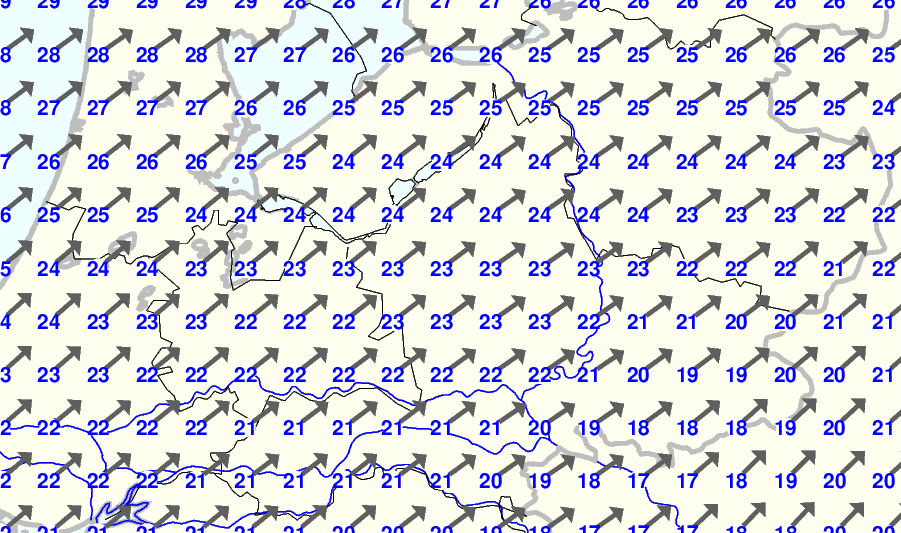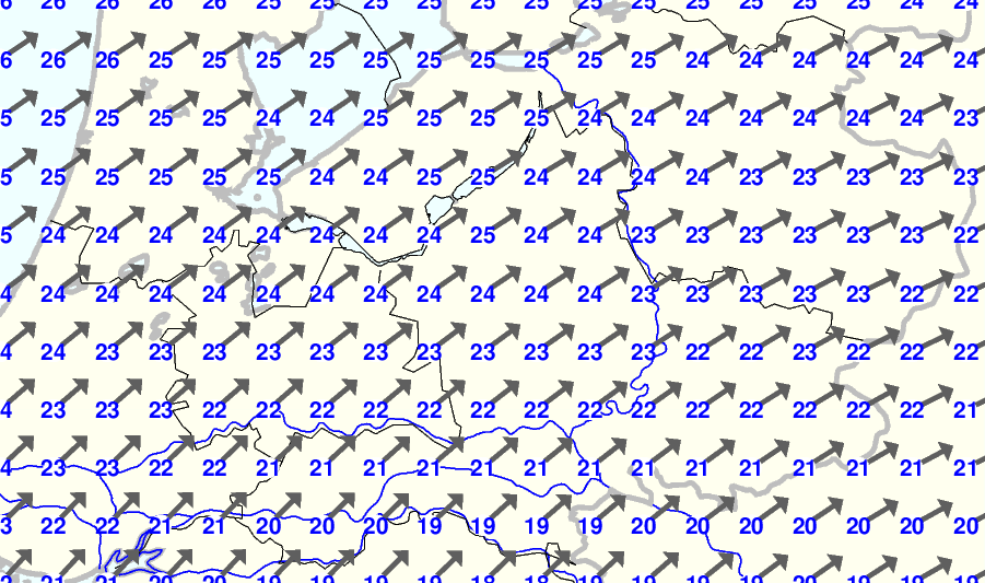 | Kijk voor de verwachting voor morgen eventueel naar de algemene KNMI verwachting |