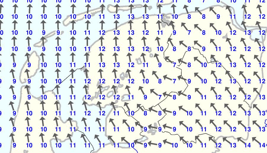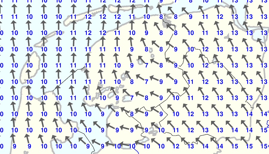 Kijk voor de verwachting voor morgen eventueel naar de algemene KNMI verwachting