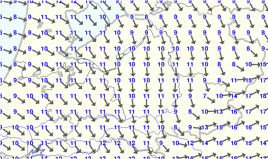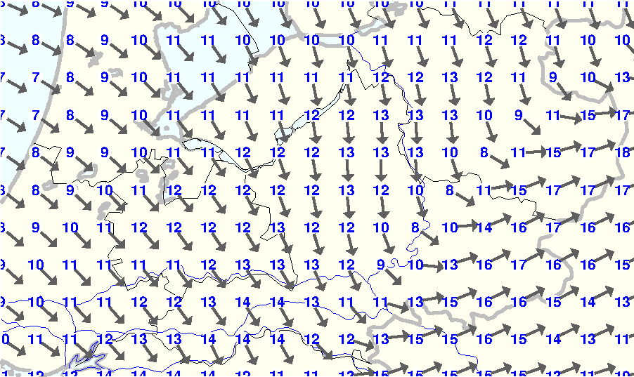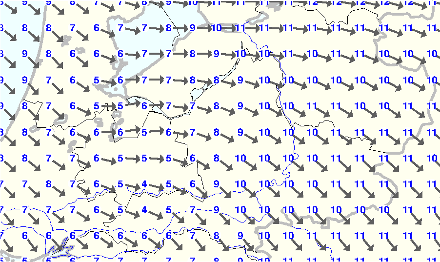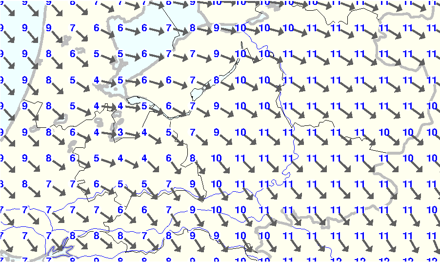 Kijk voor de verwachting voor morgen eventueel naar de algemene KNMI verwachting |